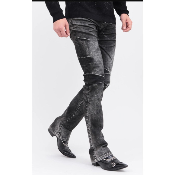 舒切牛仔褲配有硬化學、張弛有度的加工感。底妝的脫色部分和因針腳打而產生深色部分的差異,具有衝擊力的托爾內德超市風格的一本。