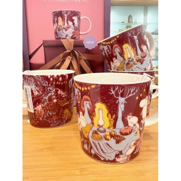 本收藏描繪了被煙花和螢火蟲的光包圍著的華麗夜祭的情景。MOOMIN谷的所有夥伴都被邀請,圍著豐富的庭院桌子吃薄煎餅和甜品。站在椅子上,以精神飽滿地乾杯的MOOMIN為中心,以溫暖的場景為主題。