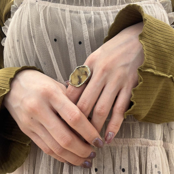 在柔軟、醇厚的密爾基色的基礎上塗上一滴重音色的設計。