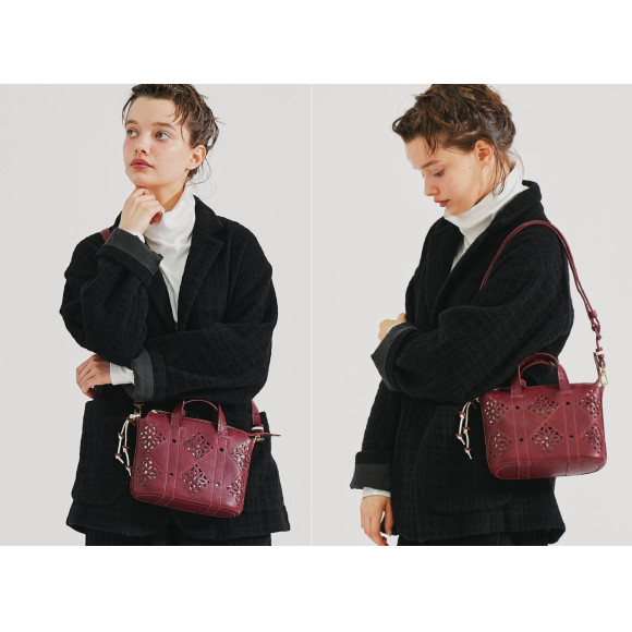 2way規格既能成為挎包也能成為手。在冬天的裝束上添加了輕快和華麗的裝飾,不論是開還是關都可以使用。