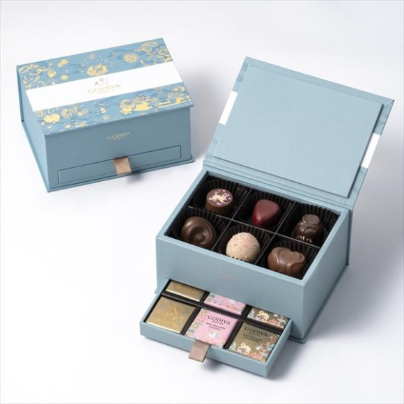 包裝裡塞滿了用微苦的黑巧克力包裹酸甜玫瑰花的玫瑰形狀巧克力和加入了酸味的草莓迦納什的心形巧克力、季節限定咖喱等。