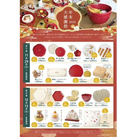銷售年末年初不可缺少的餐具、重物、天幹地支雜貨等特別物品◎